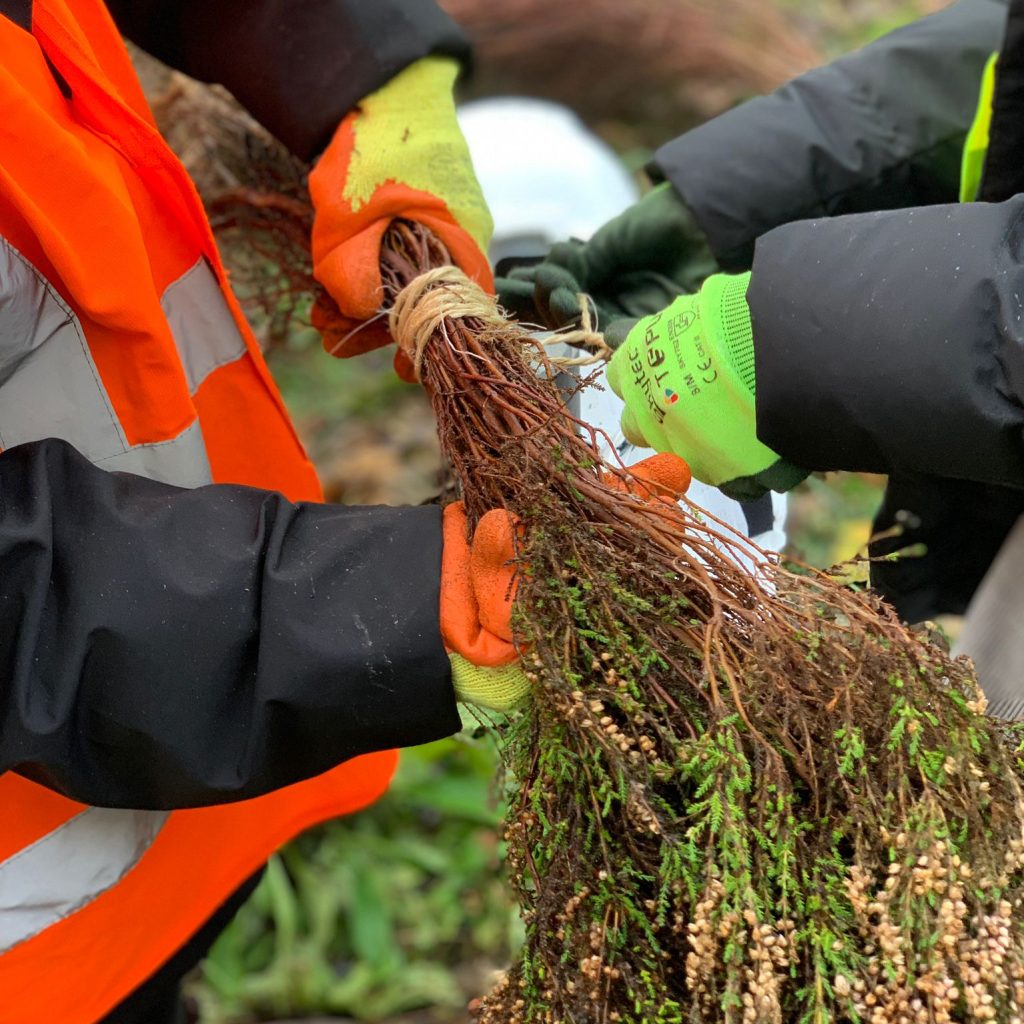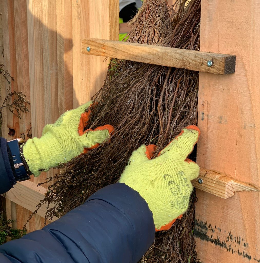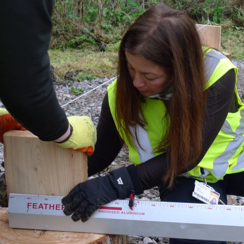 The project sought to avoid the use of concrete or any other invasive methods in the build, so colleagues at Mackintosh School of Architecture designed innovative foundations which were made from fir tree logs, and fabricated by our supportive industry partners Logie Timber. It took time and team work to lay the foundation feet, but they worked a dream!