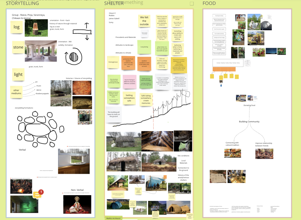 The brief suggested that the structure give shelter from the elements, it should include space for very basic food preparation, and encourage storytelling. It also asked that the students carefully consider the surroundings, the design should sit sensitively and lightly within its location. We also asked the students to design in timber and consciously reflect upon the sustainability of the proposed materials.